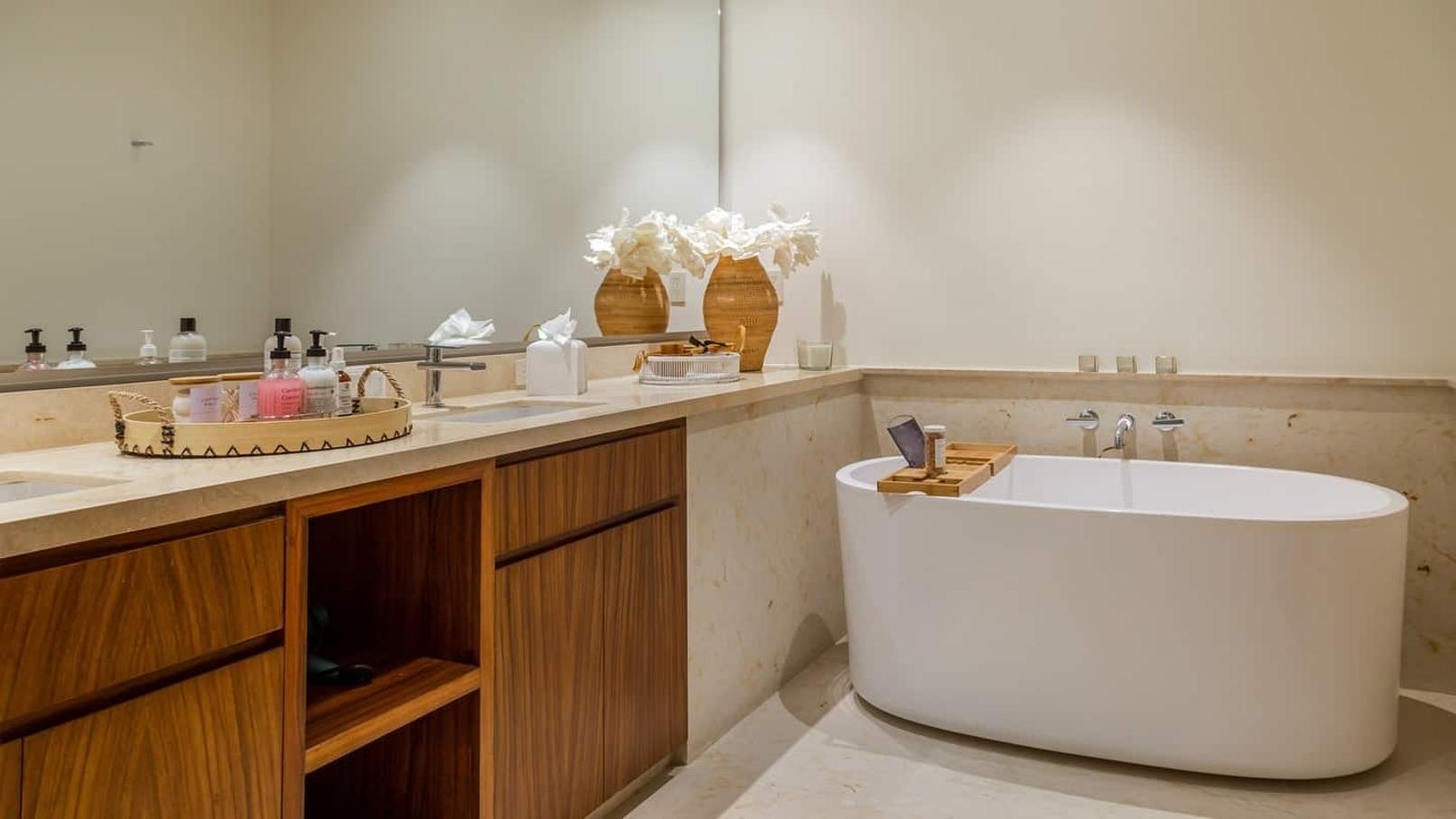 Sleeps 2 – King-size bed. En-suite bathroom with bathtub, separate shower and twin vanities. Access to shared main pool terrace with ocean view.