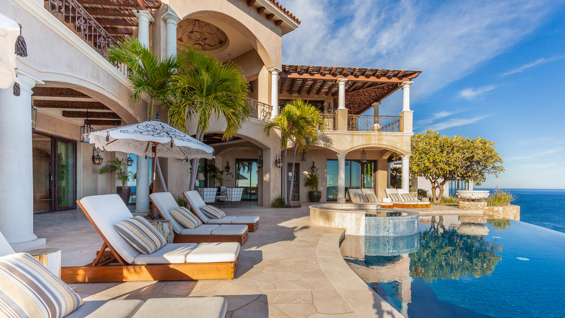 This luxurious Palmilla rental villa is a fusion of traditional Cabo style with its high imposing ceilings and European influence and the fresh influence of the beach and New World.
