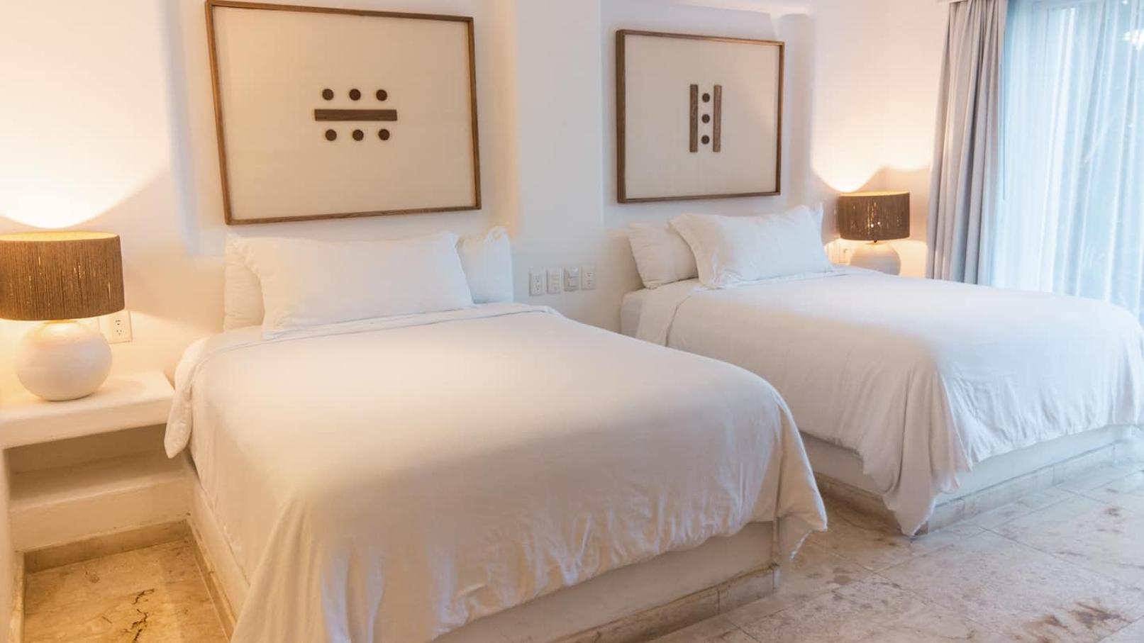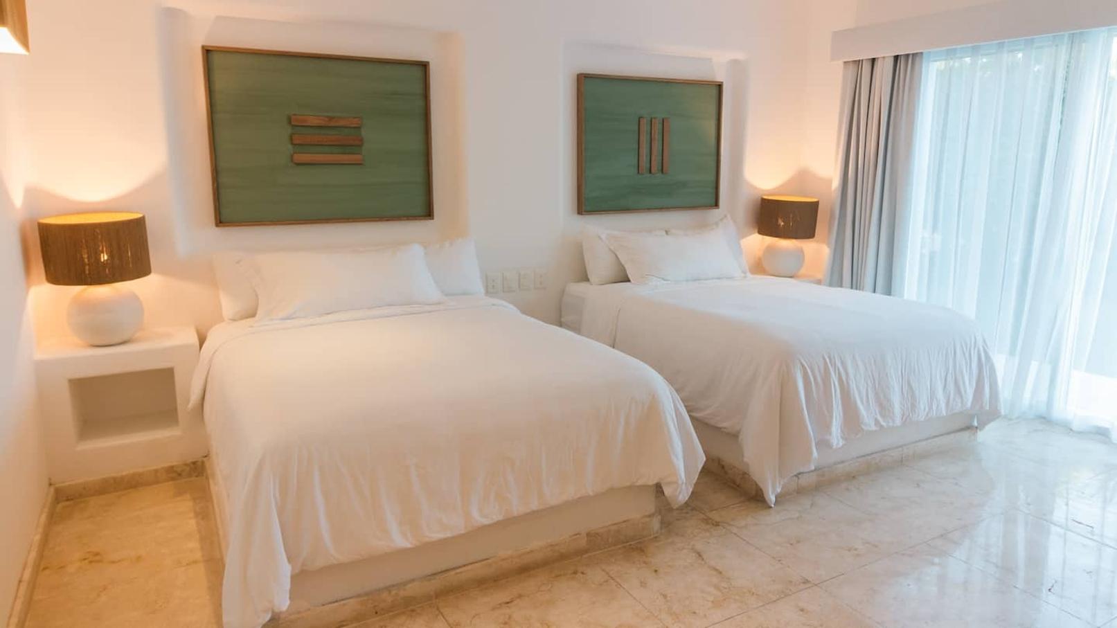 Sleeps 4 – Two Queen-size beds. En-suite bathroom with walk-in shower. Access to shared pool terrace.