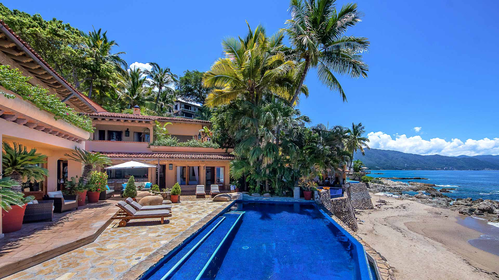 A charming Mexican gem with steps down to the beach, less than 10 minutes from Puerto Vallarta’s Romantic Zone and famed Malecon boardwalk. This beachfront Puerto Vallarta villa adorns the coastline of Conchas Chinas, one of the first jet-setter neighbourhoods in Puerto Vallarta, offering old-world luxury and relaxation plus 5-star service with an ear-to-ear smile.