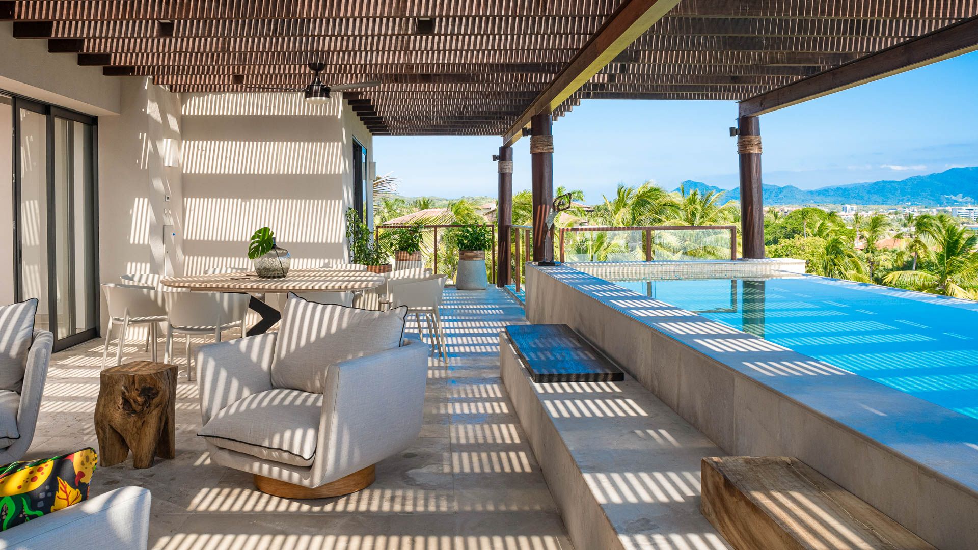 This penthouse is on the top floor of El Encanto, a gated and patrolled community within the exclusive Punta Mita development. Perched on a gentle incline, it overlooks the 4th fairway of the Bahía golf course, offering stunning views of the ocean and Banderas Bay.