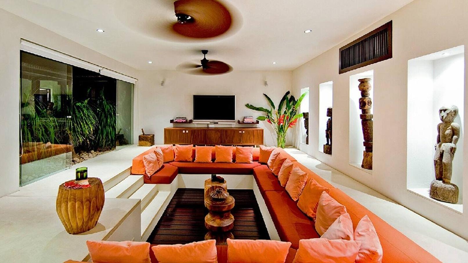 An indoor sunken den makes the ideal spot for watching movies, hanging out to read a book or just a simple dinner in front of the TV.