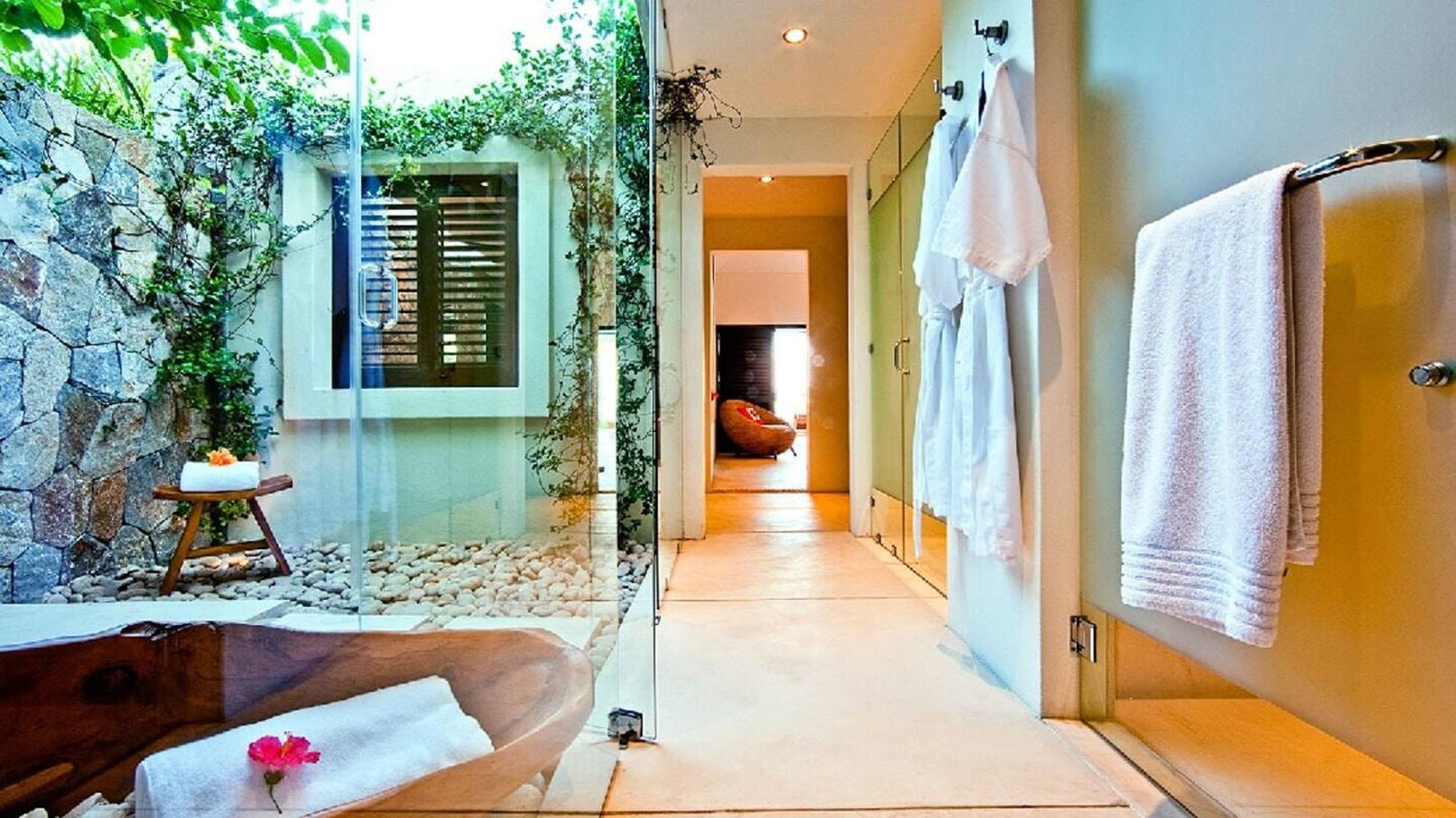 Sleeps 2 – King-size bed. Large en-suite bathroom with indoor and outdoor showers and tub.
