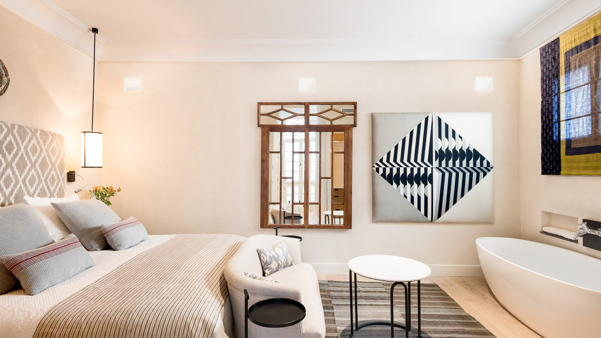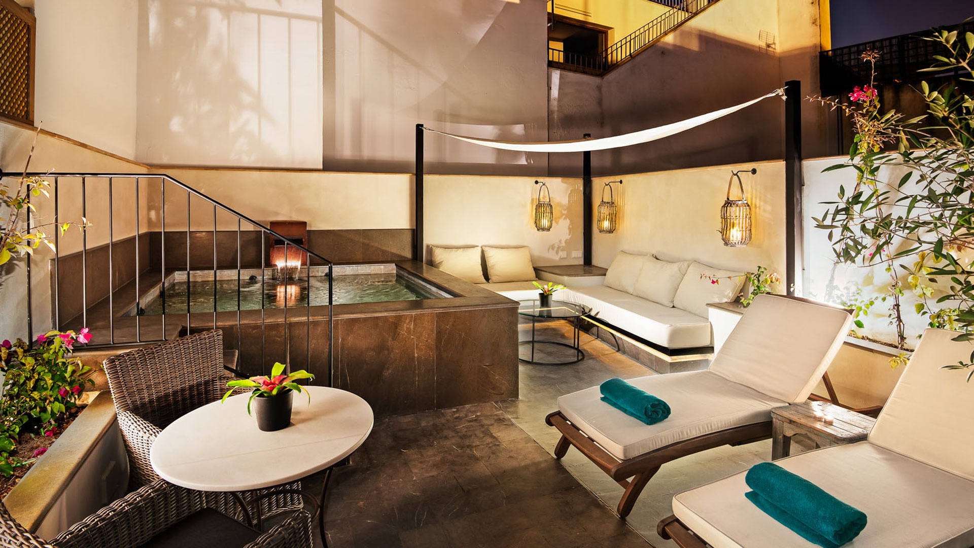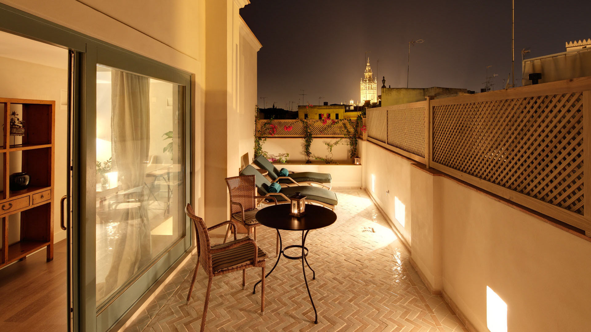 PENTHOUSE: Ascend the private staircase to a large rooftop suite with 2 private patios and a plunge pool. Natural light abounds as do the fantastic views; fill up the tub, soak in the suds and take in some of the most spectacular views of Seville from the rooftop.